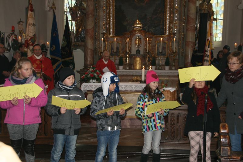 Hans Bayer und Monsignore Karl Wohlgut den Festgottesdienst. Musikalisch umrahmt wurde der Gottesdienst von der Stadtkapelle, Kinder unter der Anleitung von Gemeindereferentin Christine Gößl trugen auf anschauliche Weise die Fürbitten vor.