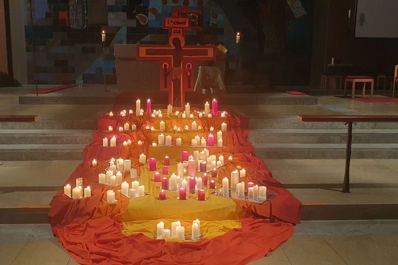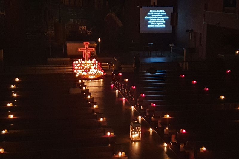 Bitten, loben, danken, Stille und meditative Gesänge, das zeichnete die gut besuchte Gebetsstunde aus. Am Ende konnte jeder Gläubige sein persönliches Anliegen vor das Kreuz tragen und eine Kerze dazu abstellen.