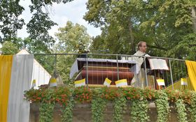 | Pfarrei GrafenwöhrZum Annafest kamen viele Gläubige und Vereinsvertreter mit ihren Fahnen auf den Annaberg, um die heilige Messe vor der Maria-Hilf-Kirche zu feiern.